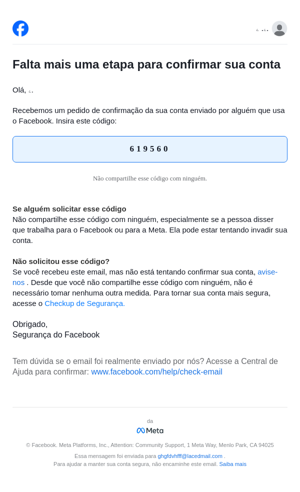 Seu código do Facebook é 619560