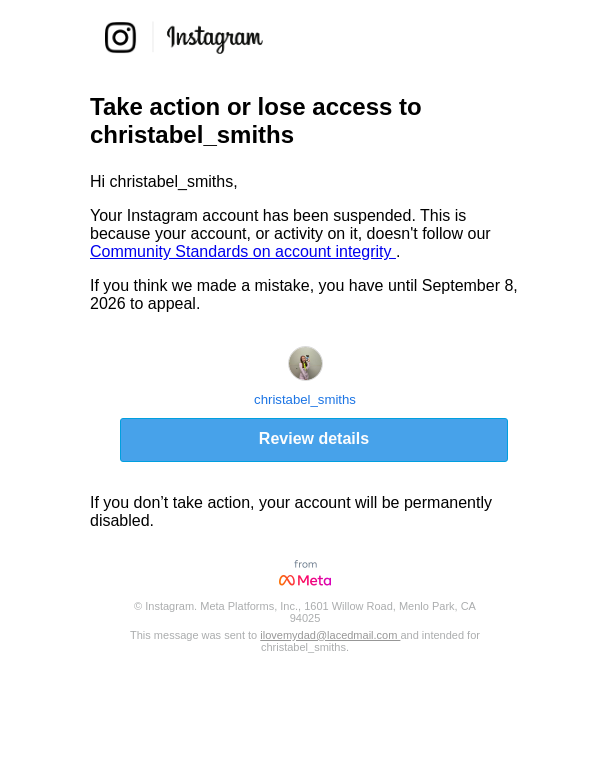 Action needed on your account, christabel_smiths