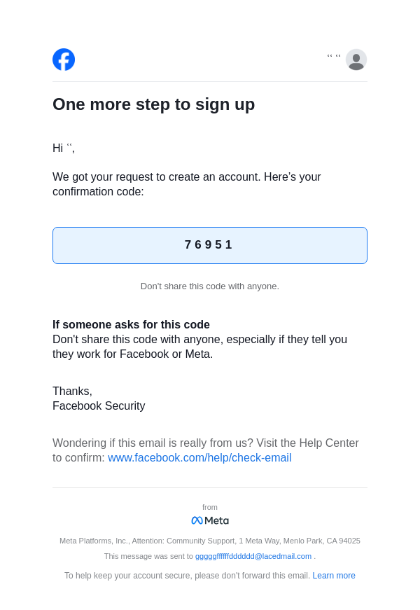 To: gggggffffffdddddd@lacedmail.com From: registration@facebookmail.com Received: 2026-03-14 22:44:39.772384