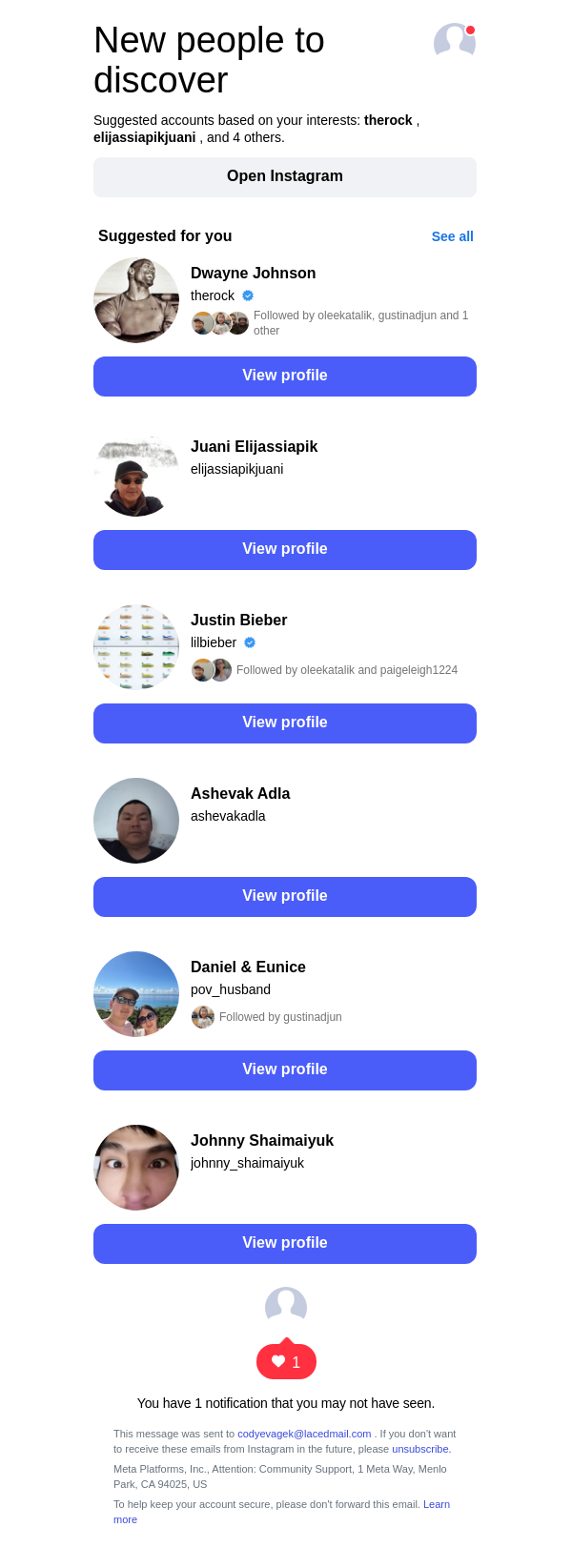 To: codyevagek@lacedmail.com From: follow-suggestions@mail.instagram.com Received: 2026-03-16 12:53:52.923100