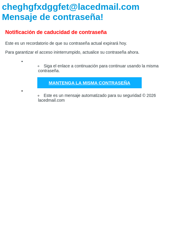 lacedmail.com ContraseƱa para cheghgfxdggfet@lacedmail.com Caduca hoy!