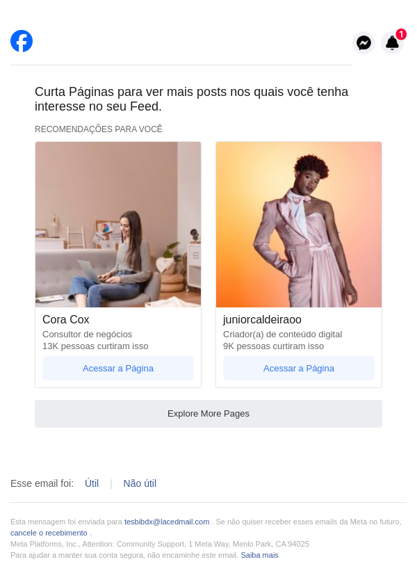 Você tem 2 novas sugestões de Páginas incluindo Cora Cox.