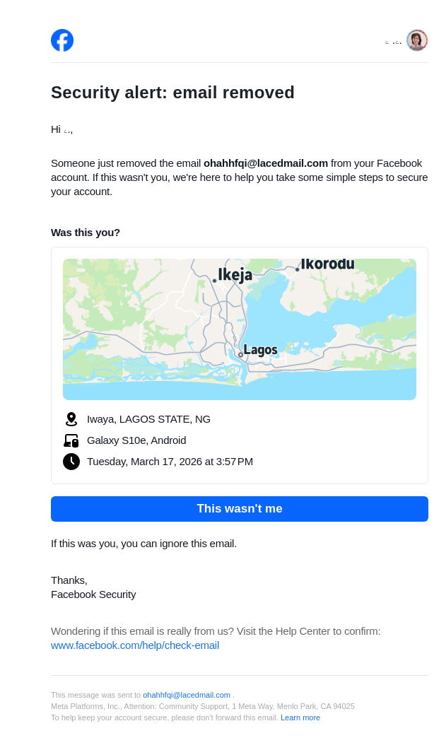From: notification@facebookmail.com