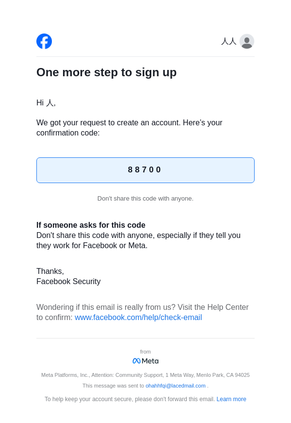 From: registration@facebookmail.com