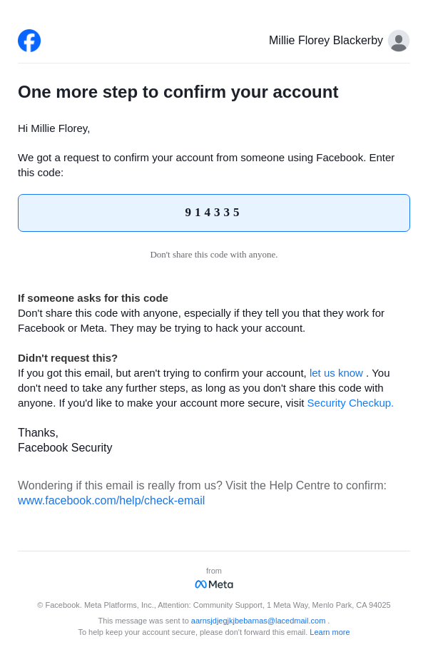 To: aarnsjdjegjkjbebarnas@lacedmail.com From: security@facebookmail.com Received: 2026-03-19 05:02:10.157942