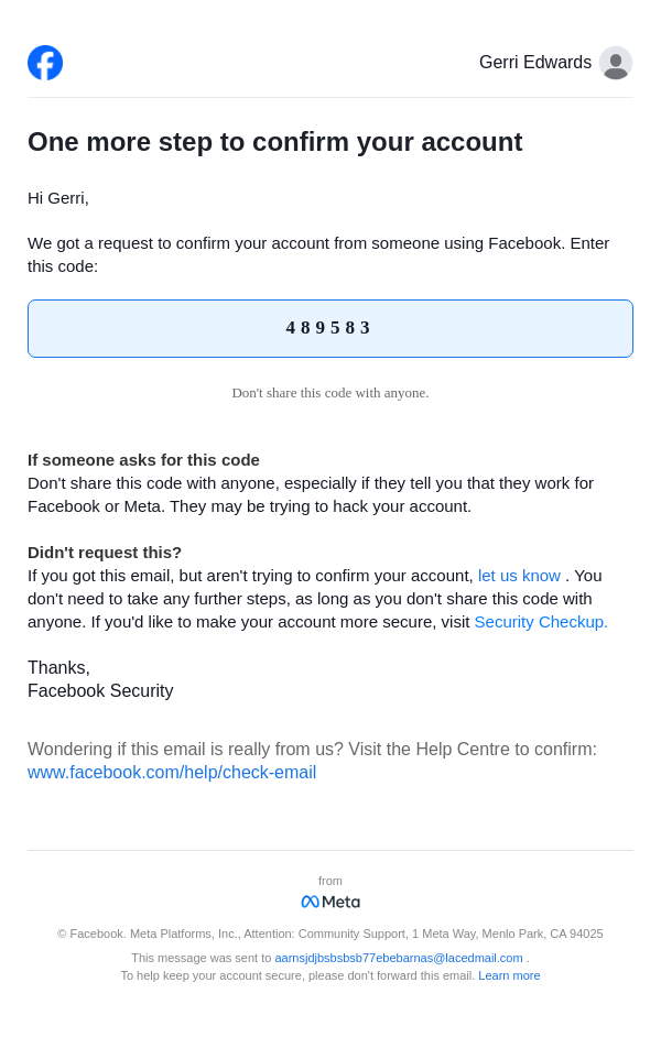 To: aarnsjdjbsbsbsb77ebebarnas@lacedmail.com From: security@facebookmail.com Received: 2026-03-19 08:45:22.712216