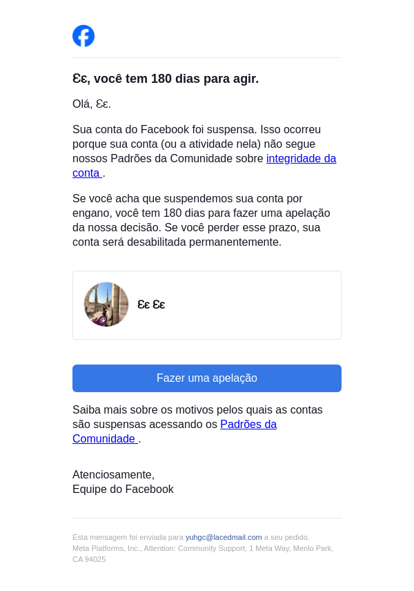 Ação necessária na sua conta do Facebook