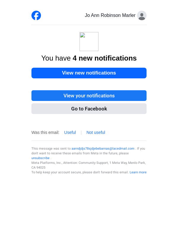 To: aarndjdjs78sjdjebebarnas@lacedmail.com From: reminders@facebookmail.com Received: 2026-03-23 13:58:11.019855
