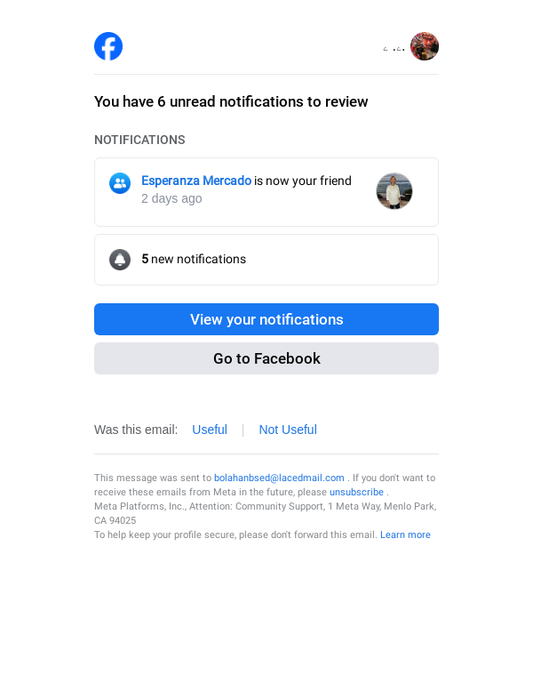 You have 6 notifications about Esperanza and others