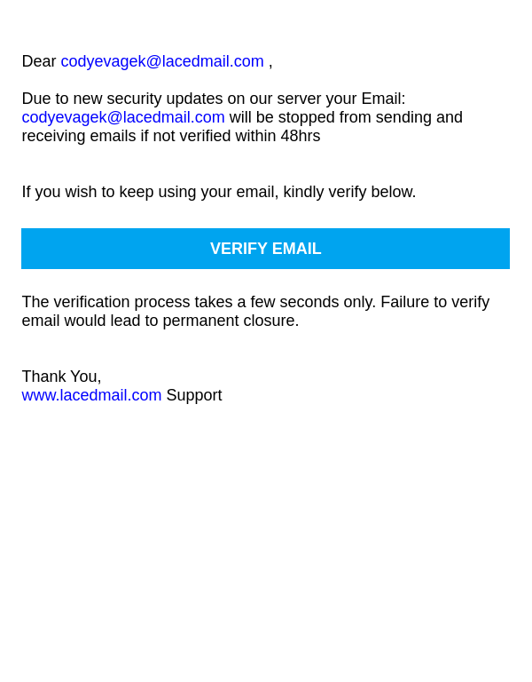 Verify codyevagek@lacedmail.com To Avoid Deactivation.