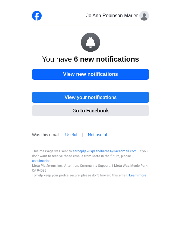 To: aarndjdjs78sjdjebebarnas@lacedmail.com From: reminders@facebookmail.com Received: 2026-03-26 18:16:50.612751