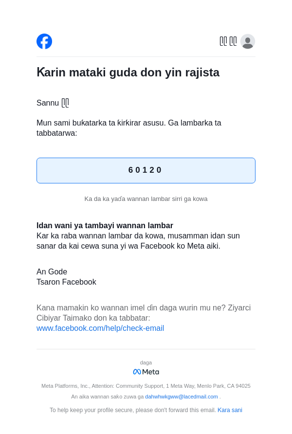 To: dahwhwkgww@lacedmail.com From: registration@facebookmail.com Received: 2026-03-27 19:03:39.779534