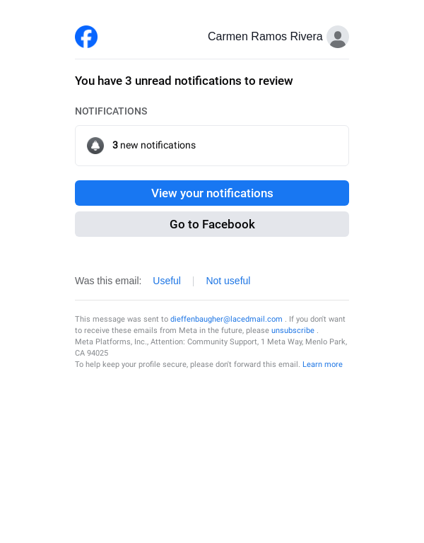 To: dieffenbaugher@lacedmail.com From: reminders@facebookmail.com Received: 2026-03-28 04:23:42.059577