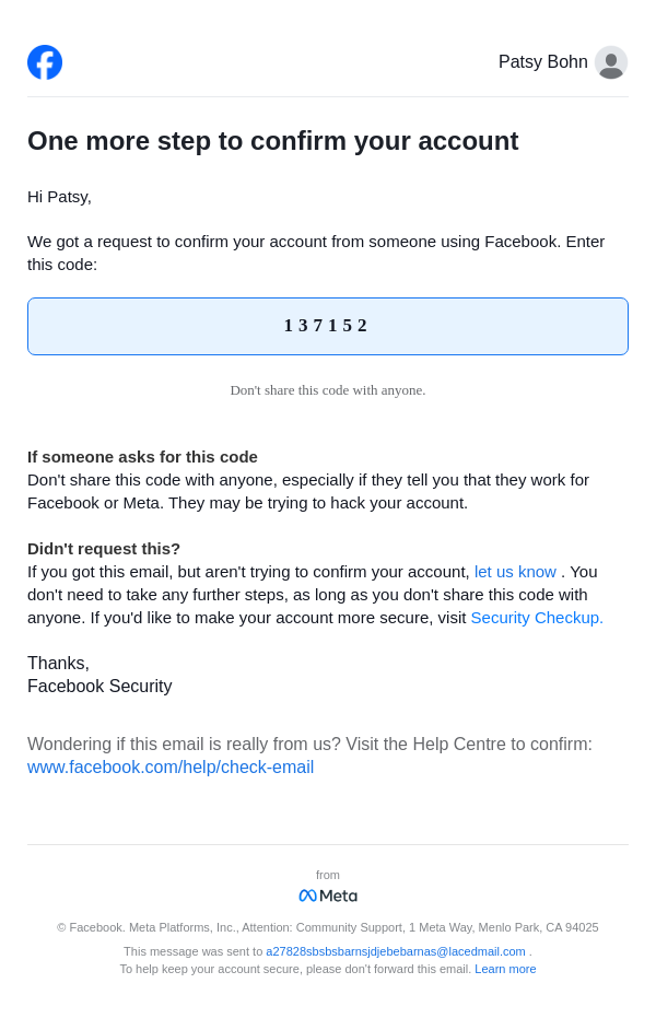 To: a27828sbsbsbarnsjdjebebarnas@lacedmail.com From: security@facebookmail.com Received: 2026-03-29 19:57:27.069277