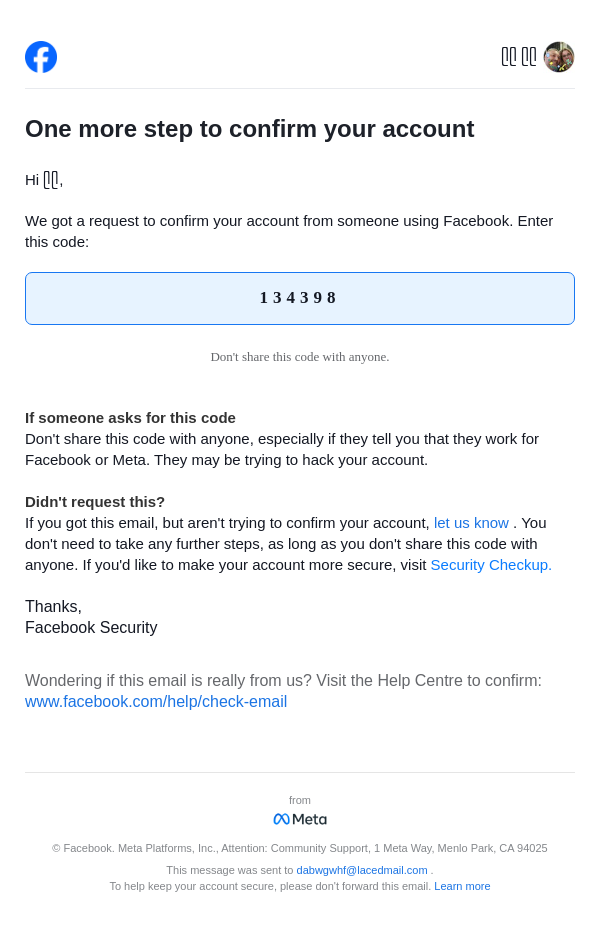 From: security@facebookmail.com