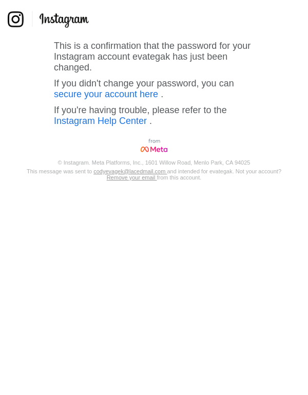 Your Instagram password has been changed
