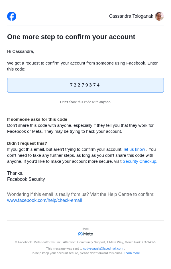 From: security@facebookmail.com