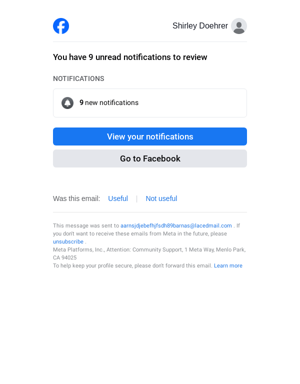 To: aarnsjdjebefhjfsdh89barnas@lacedmail.com From: reminders@facebookmail.com Received: 2026-04-04 19:44:03.077634