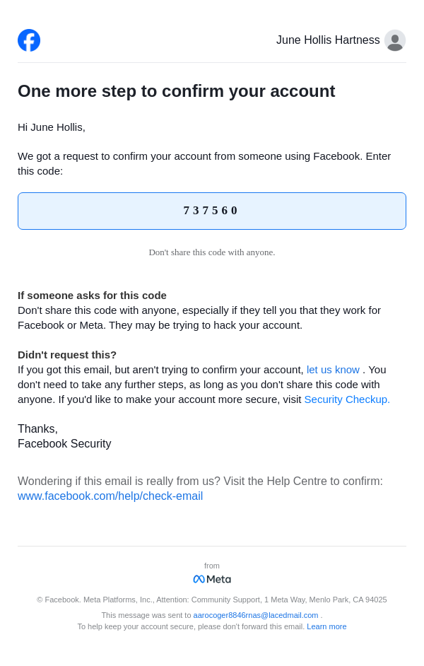 To: aarocoger8846rnas@lacedmail.com From: security@facebookmail.com Received: 2026-04-06 20:25:55.249764