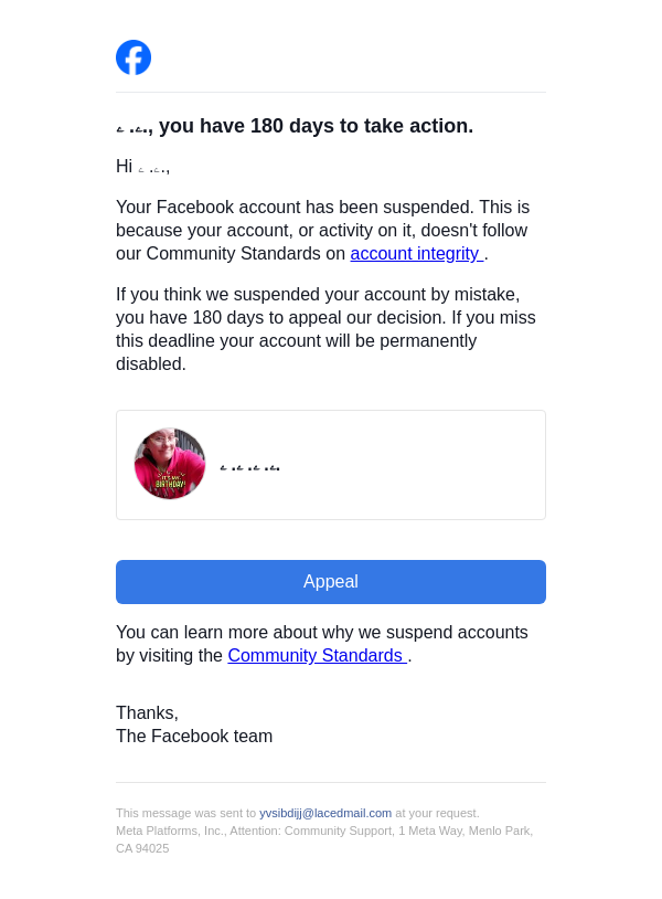Action needed on your Facebook account