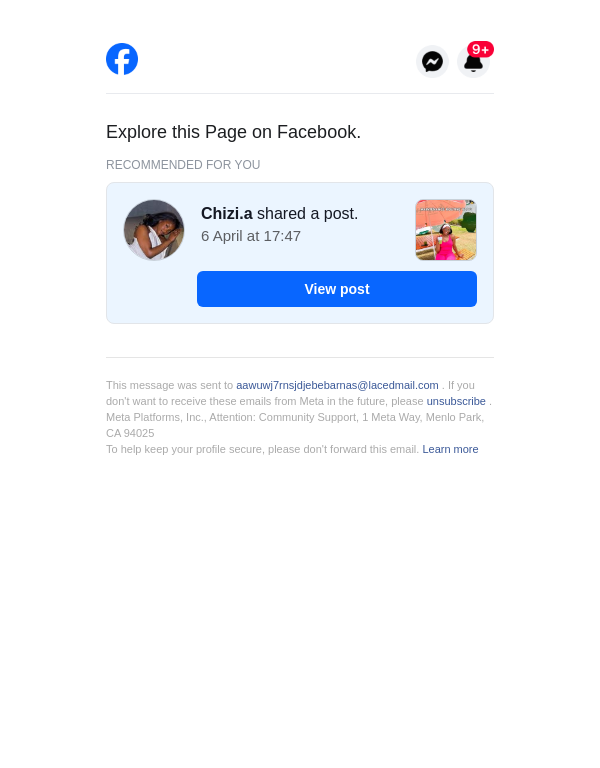 To: aawuwj7rnsjdjebebarnas@lacedmail.com From: pageupdates@facebookmail.com Received: 2026-04-07 20:37:34.415591