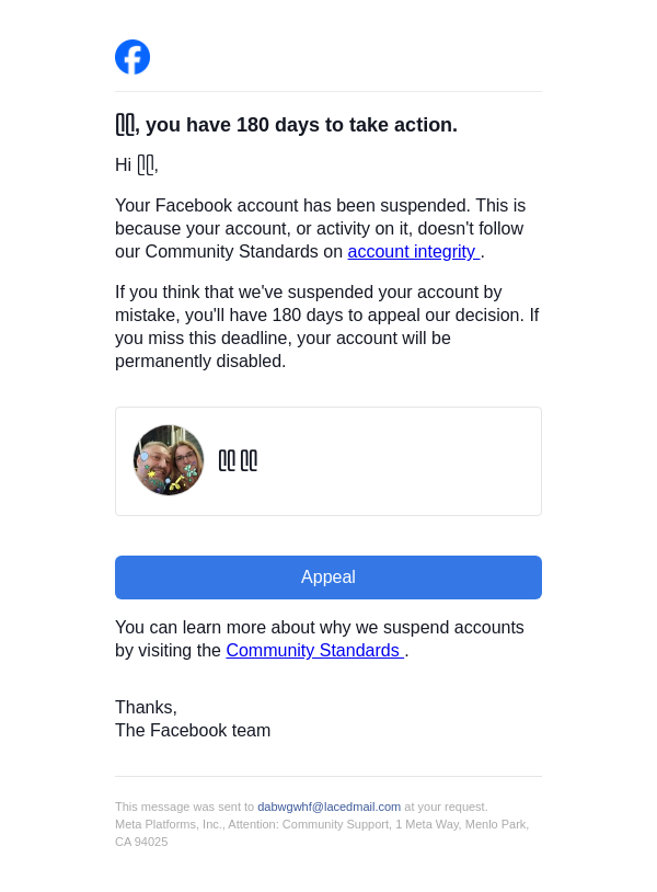 Action needed on your Facebook account