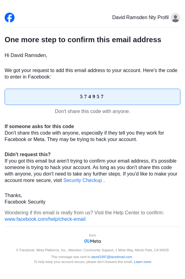 574957 is your code to confirm this email