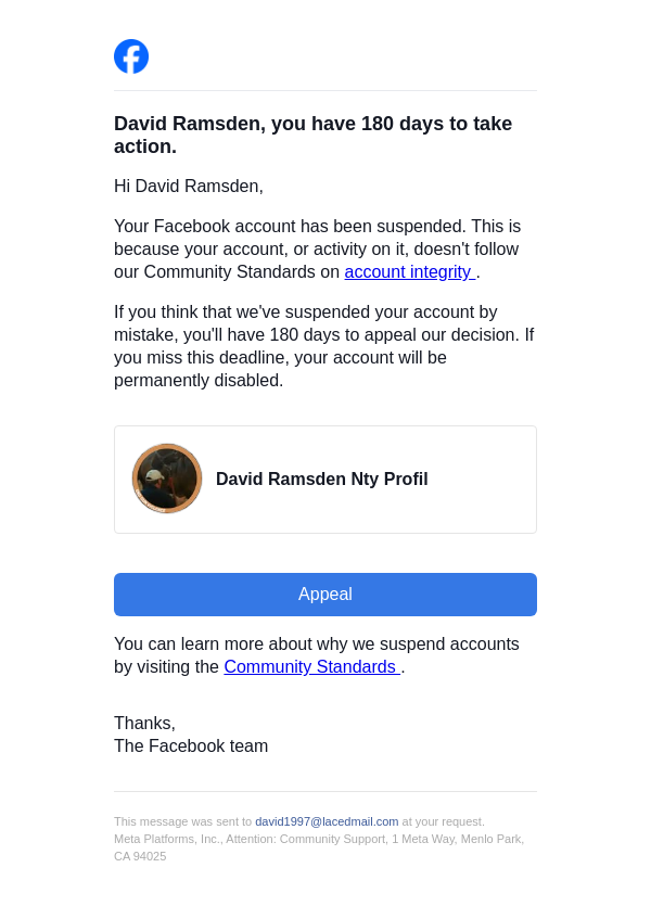 Action needed on your Facebook account
