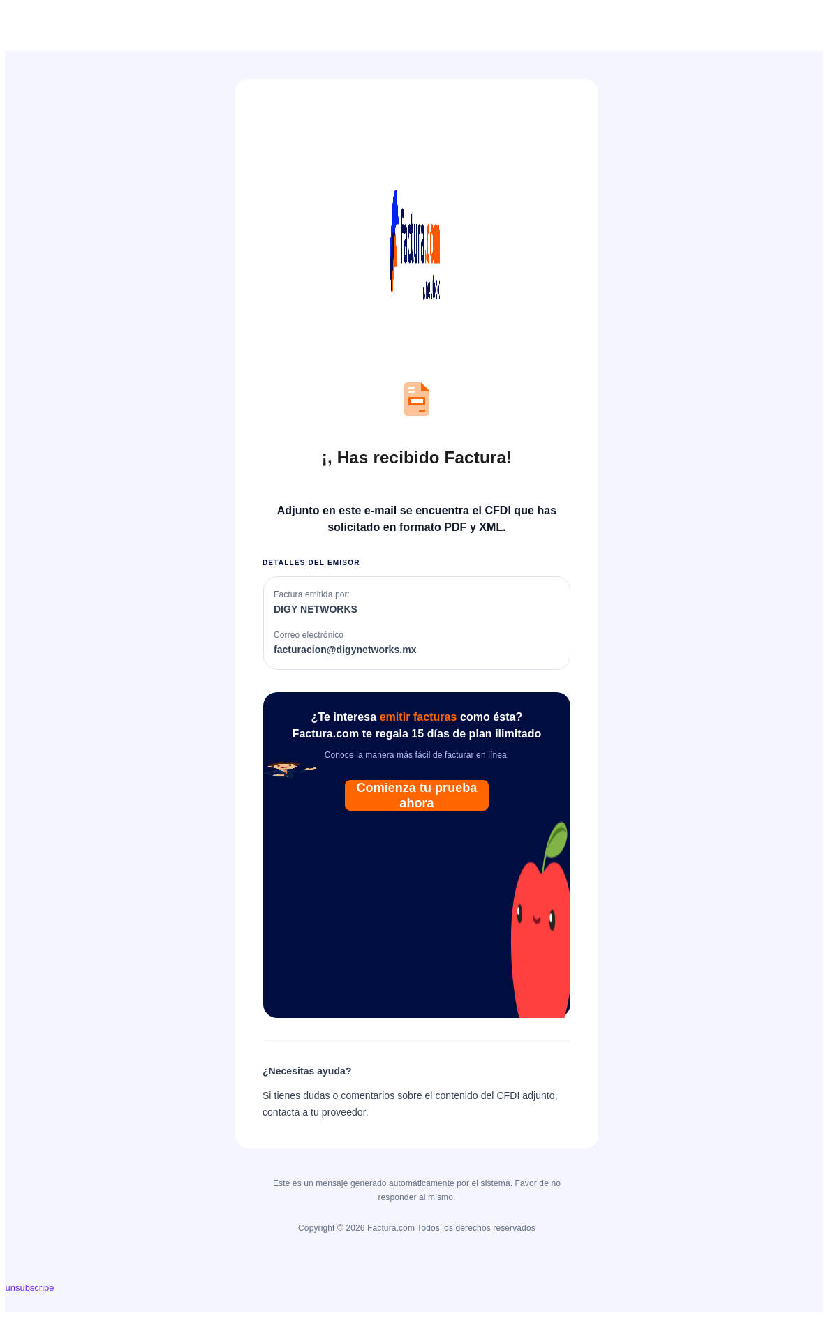 DIGY NETWORKS te ha enviado Factura a través de Factura.com