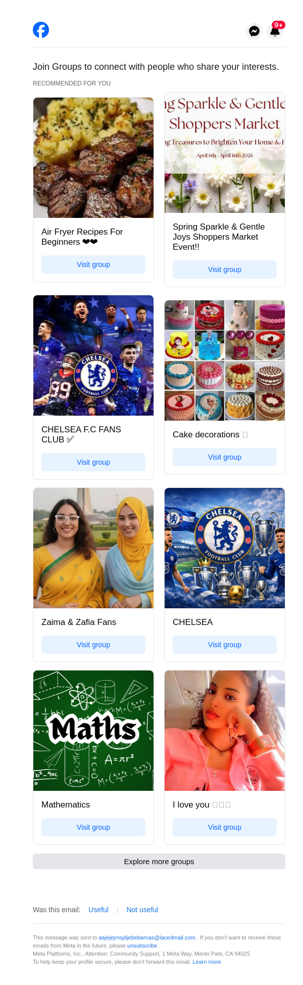To: aajejejrnsjdjebebarnas@lacedmail.com From: groupupdates@facebookmail.com Received: 2026-04-16 19:40:17.237708