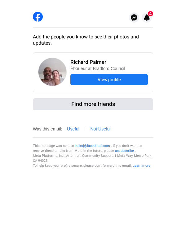 To: iksksj@lacedmail.com From: friendsuggestion@facebookmail.com Received: 2026-04-17 06:42:38.786063
