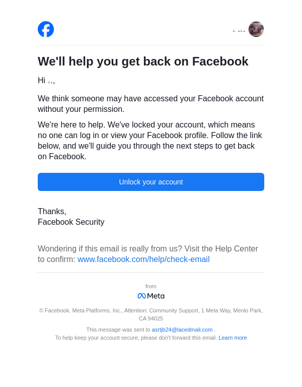 Unlock your Facebook account