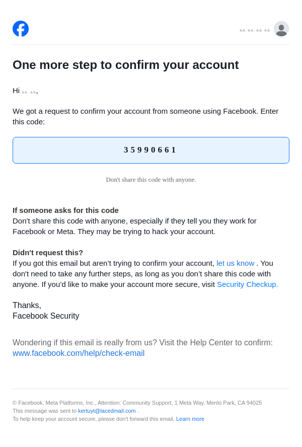 From: security@facebookmail.com