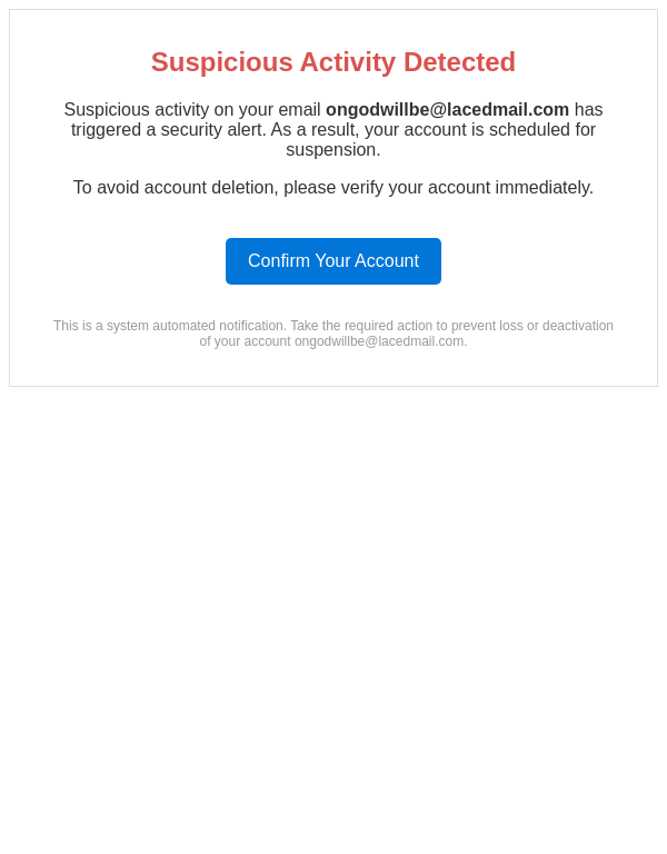 ⛔ ongodwillbe@lacedmail.com: Suspension Notification