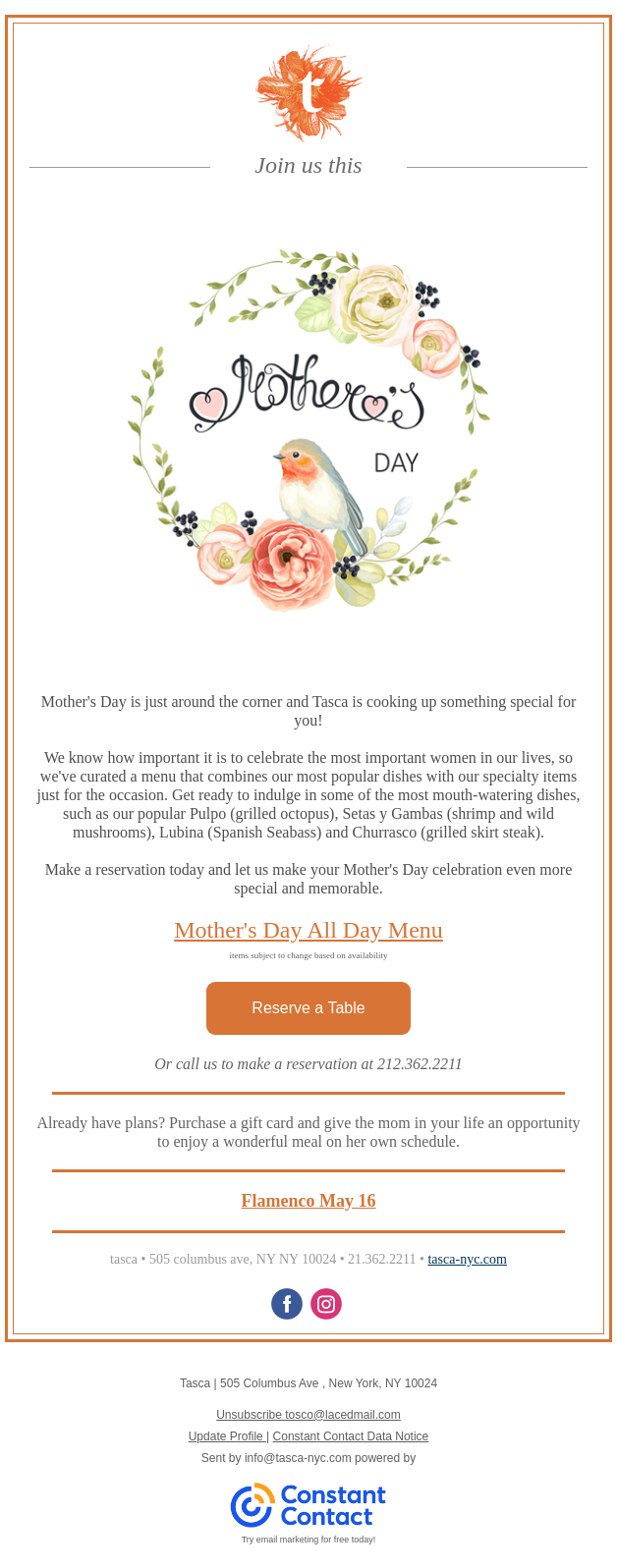 To: tosco@lacedmail.com From: info-tasca-nyc.com@shared1.ccsend.com Received: 2024-05-05 15:00:45.478960