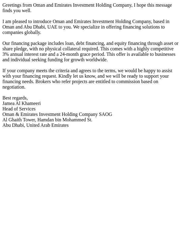 Oman & Emirates Investment Holding Company 3% Annual Interest