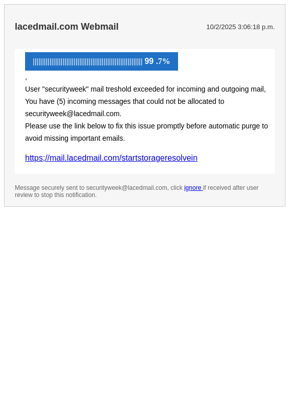 Storage Usage on lacedmail.com Email Exceeded for user (securityweek) 10/2/2025 3:06:18 p.m.