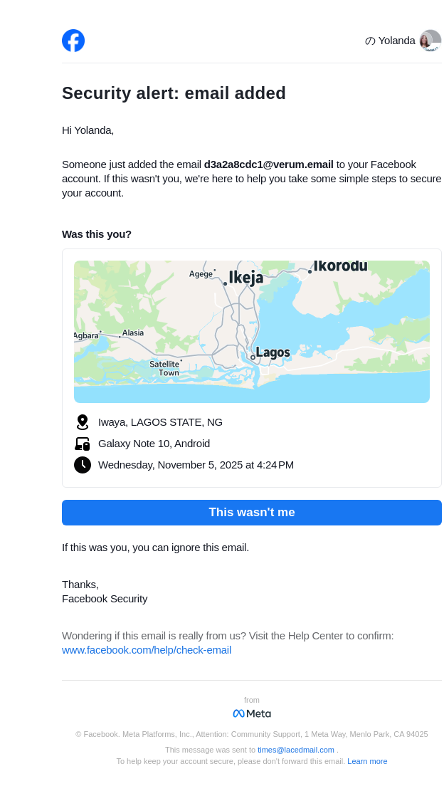From: security@facebookmail.com