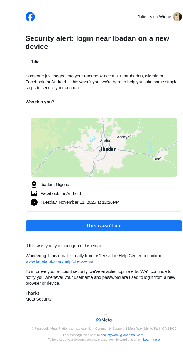 Did you just log in near Ibadan on a new device?