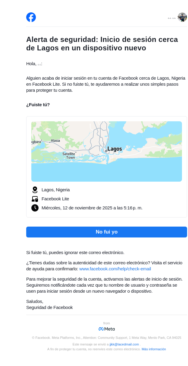 ¿Acabas de iniciar sesión cerca de Lagos en un dispositivo nuevo?