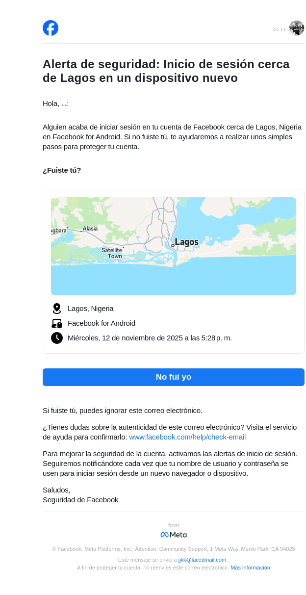 ¿Acabas de iniciar sesión cerca de Lagos en un dispositivo nuevo?