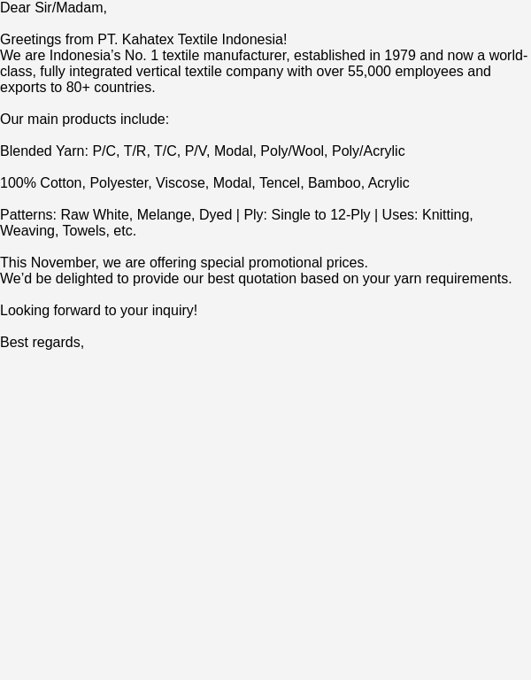 From: sales@Ptkahatextileindo.com