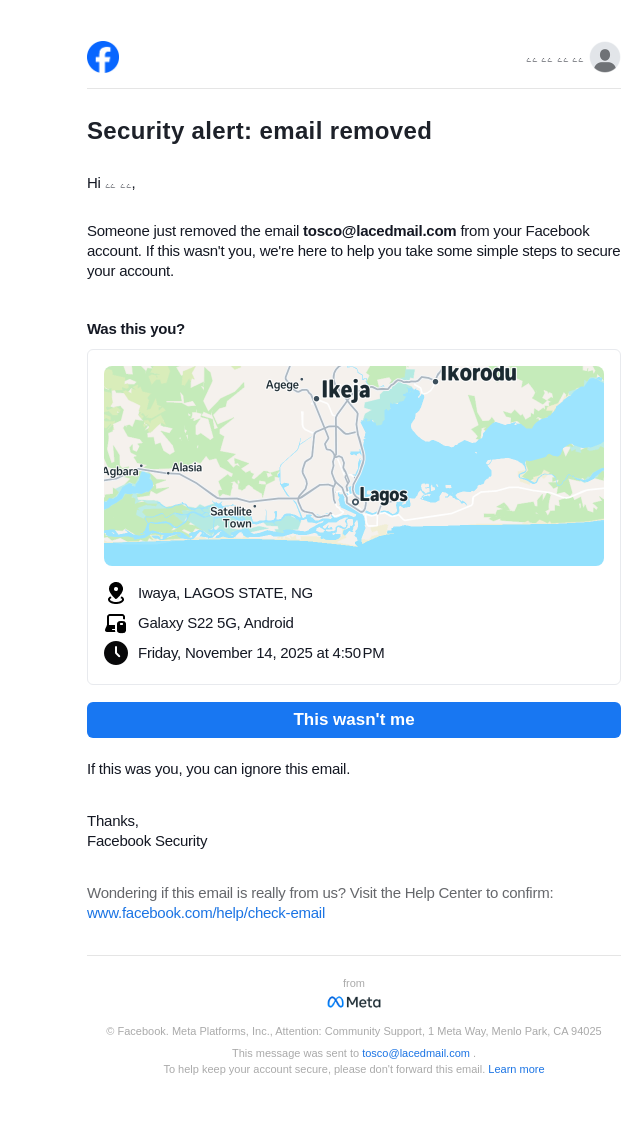 From: security@facebookmail.com