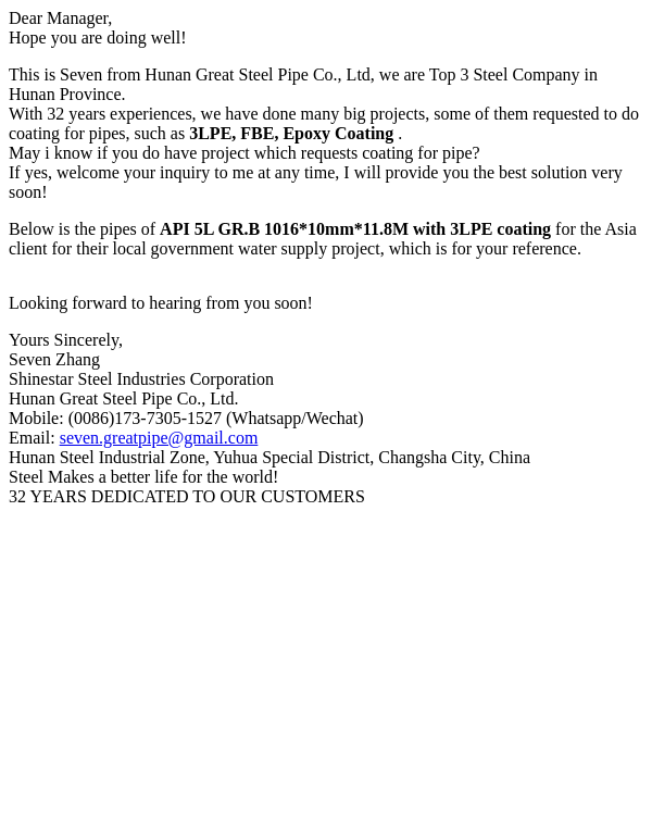 RE: Inquiry for Steel Pipe/Fittings/Steel Items