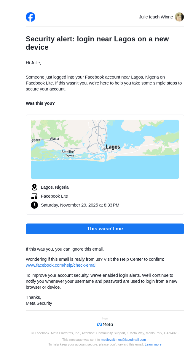 Did you just log in near Lagos on a new device?