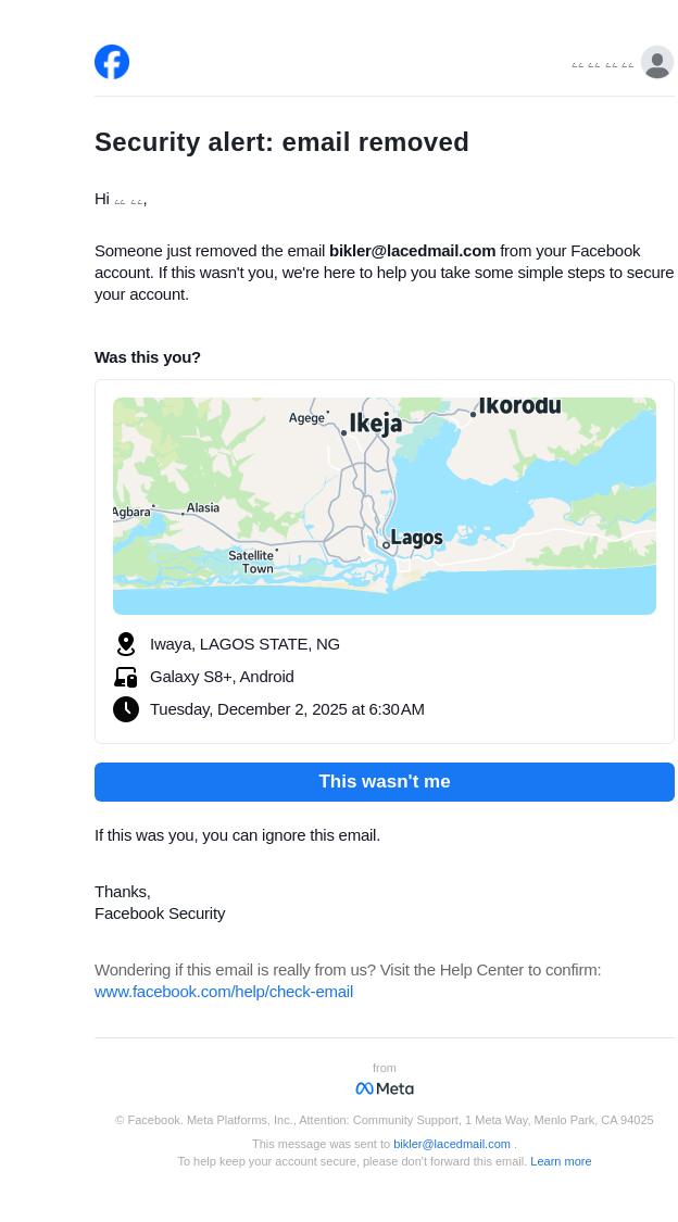 From: security@facebookmail.com