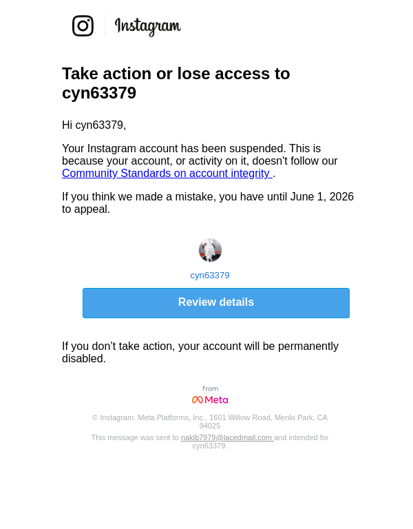 Action needed on your account, cyn63379