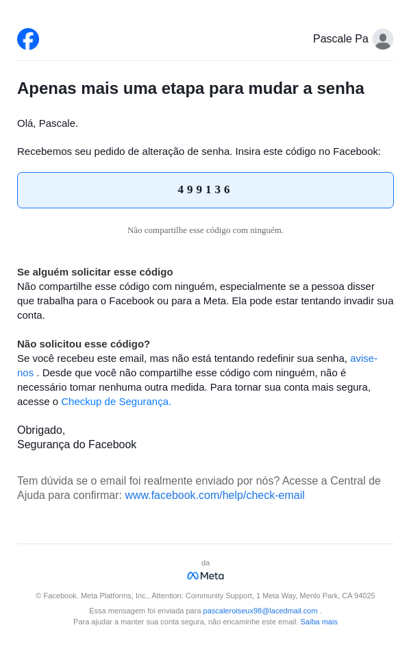 To: pascaleroiseux98@lacedmail.com From: security@facebookmail.com Received: 2025-12-09 01:27:29.146737