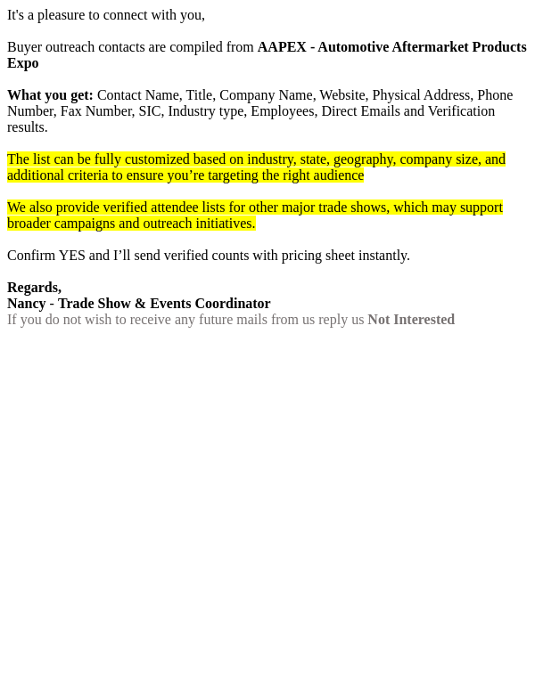 To: nike@lacedmail.com From: nancy.connectleadretrieval@outlook.com Received: 2025-12-09 18:42:56.722076