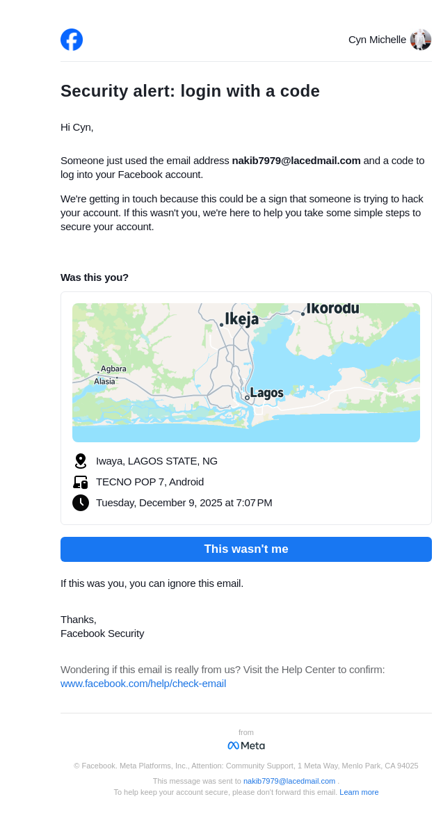 From: security@facebookmail.com